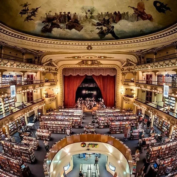 Es una librería impactante que está ubicada dentro de lo que era un teatro. Se puede tomar un café, disfrutar de música en vivo y comprar todo tipo de libros.